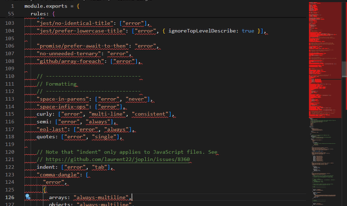 Specifically, we’re using ESLint to actually enforce the coding standards, whereas previous IDEs did not have a strict enforcement. In other words, writing code that did not follow said standards would result in an error.